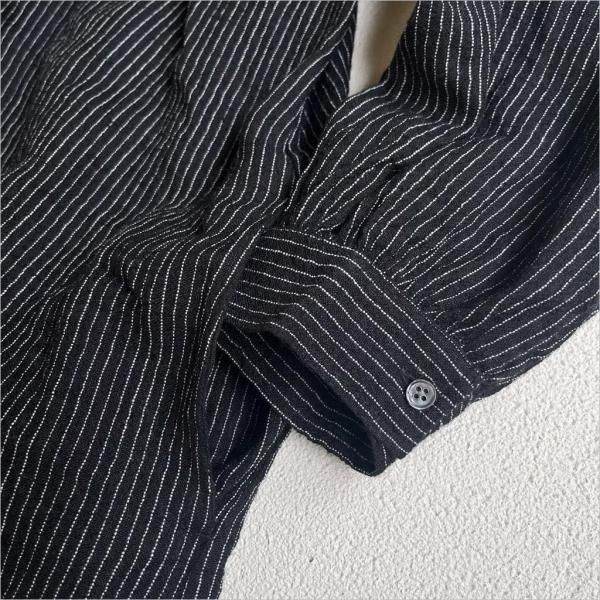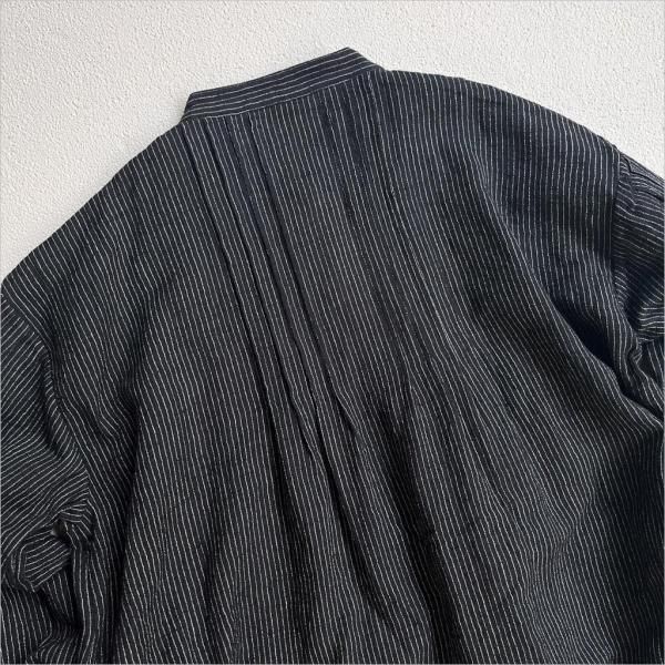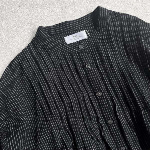 SOIL [ソイル] ウールリネンストライプ バンドカラーピンタックドレス