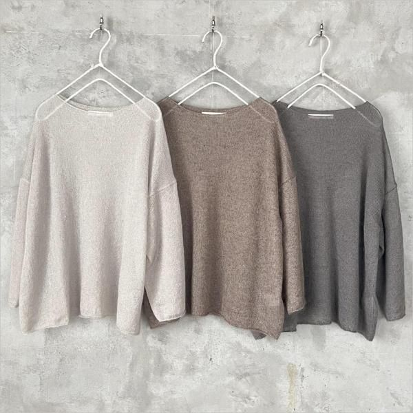モヘアの糸でざっくりと編み立てています。