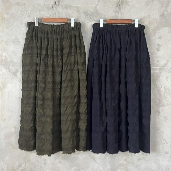 ふっくらと暖かみのあるコットンウールのギャザースカート。